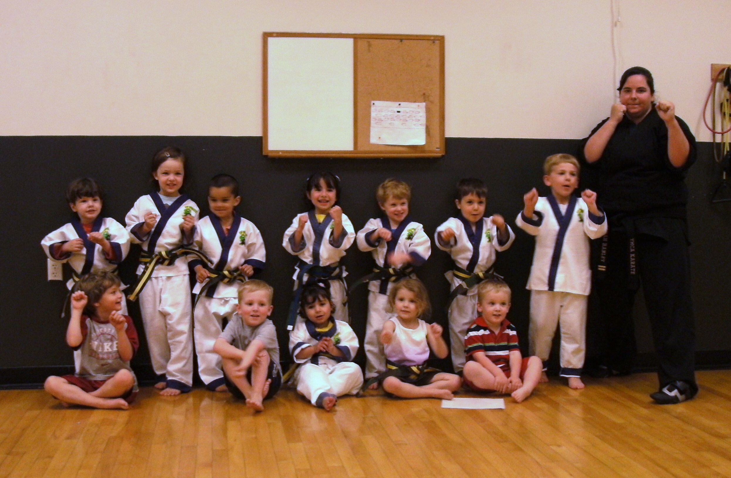 Sensei Sarah noticed that Dakota loved to watch her teach class and how she would mimic the student’s moves even though she was just 2 years old, so it was at this time that she adapted the curriculum to fit the age appropriate needs of the 3-5 year old market and began teach her little dragons program. Now Dakota is 8 years old and has her purple belt, but her little sister, Kacey was born in 2008 and so Sensei Sarah decided that even younger children should do karate too! Armed with a bachelors degree in business and her CDA (child development associate) in preschool teaching she used her knowledge of child development to develop her own curriculum for infant/toddlers from age 14 months – 3 that she is patenting and is trademarking as “Sensei Sarah’s Peewee Pandas” where children from 2 months after they begin walking can begin their journey in the martial arts or just learn some great balance and coordination skills.