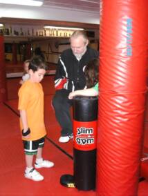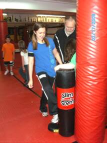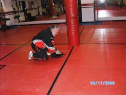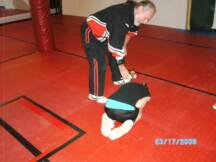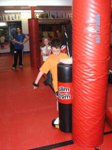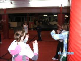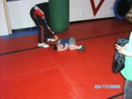 Our Dog Defense against our extremely vicious stuffed karate dog!!!!